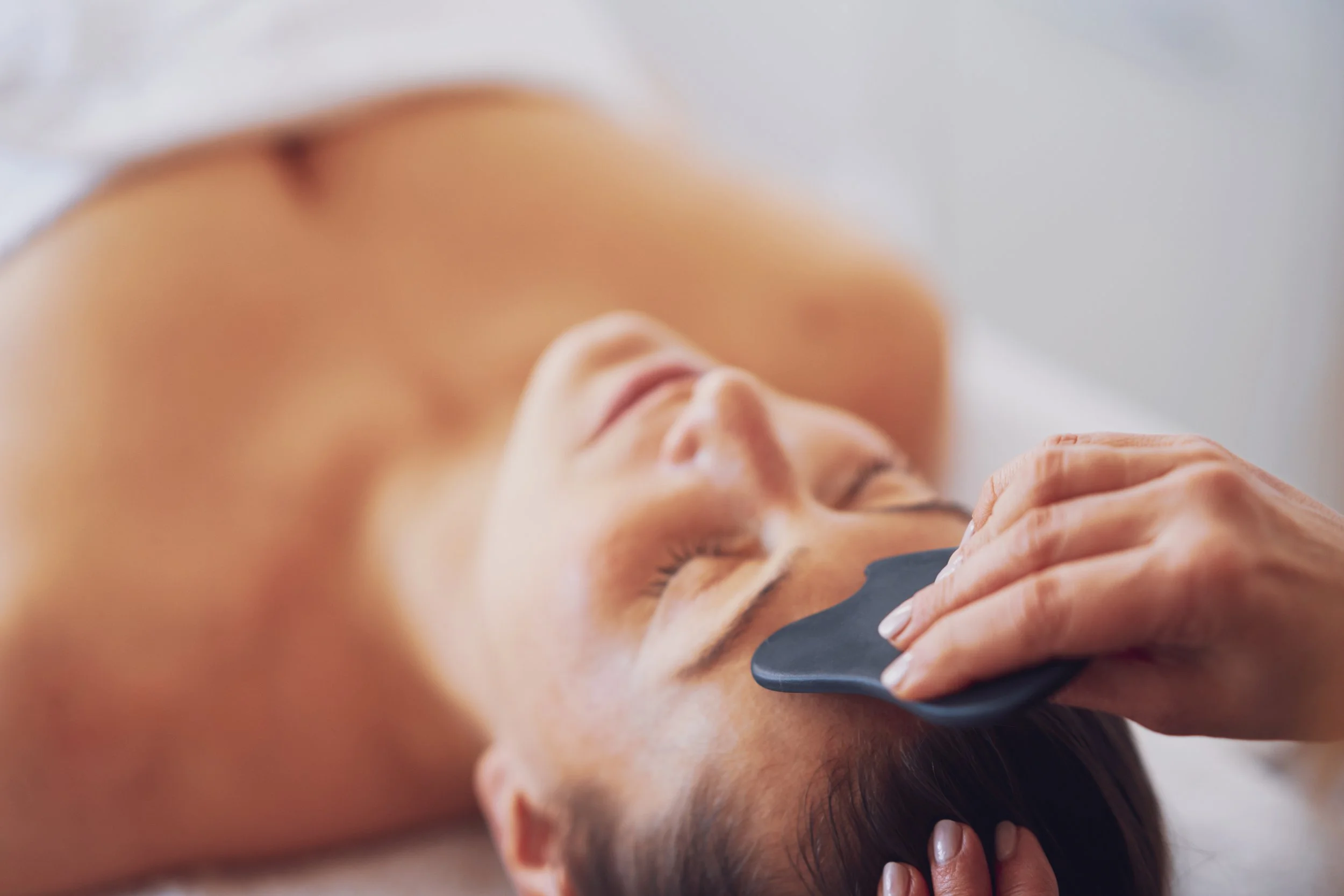 Facial gua sha uses a smooth stone tool to gently scrape the skin, targeting muscle tension and fascia beneath the surface. This technique helps relieve jaw pain, TMJ discomfort, sinus pressure, and headaches by increasing blood circulation and promoting lymphatic drainage. It also reduces inflammation, alleviates facial muscle tightness, and encourages relaxation. Regular treatments can improve mobility, reduce chronic pain, and enhance overall facial health, providing a natural approach to both tension relief and well-being.